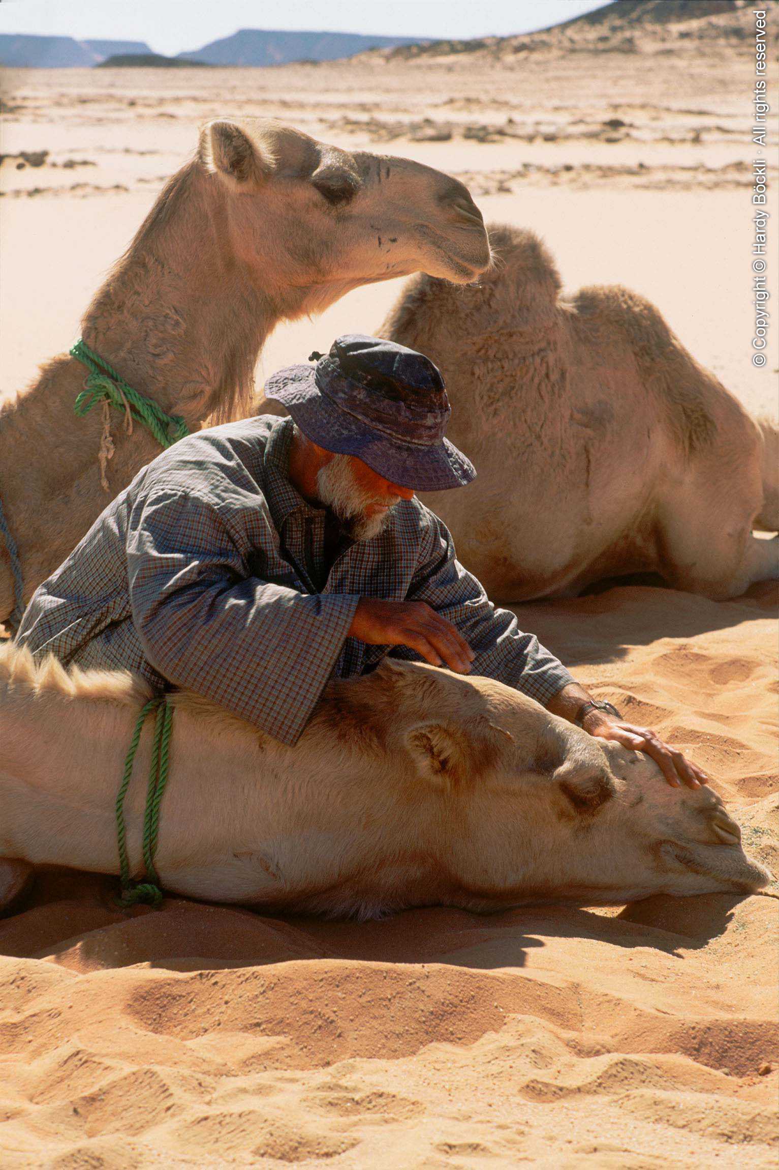 Vom Sudan aus ist er 1982 zu seinen ersten Karawanen aufgebrochen. Seitdem verbringt Carlo Bergmann einen grossen Teil eines jeden Jahres forschend in der ägyptischen Wüste. Er hat sich mittlerweile einen Namen als Kenner der Beduinen und ihrer Kultur gemacht, vor allem aber geniesst er Anerkennung als Ägyptologe und Archäologe. Die Aufzucht einer eigenen Kamelherde vor Ort hat ihm ermöglicht, völlig unabhängig und als Einzelgänger die Unendlichkeit dieser menschenleeren, einzigartigen Landschaften, diese Sandmeere zwischen dem Niltal, Libyen und dem Sudan forschend zu durchqueren.